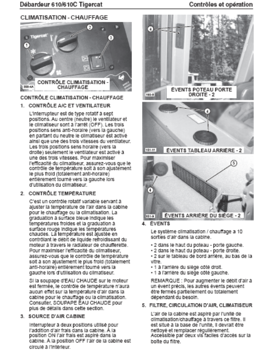 Download Complete Operator/User Manual PDF For Tigercat 610 Skidder | Serial No. (6100101-6100300) - French