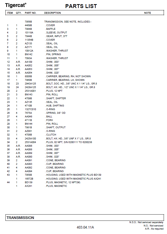 Download Complete Parts Catalogue Manual For Tigercat 610 Skidder | Serial No. 6100101 - 6100300