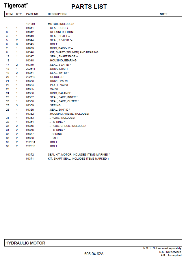 TIGERCAT 610 PARTS CATALOGUE MANUAL