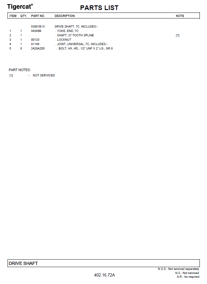 Download Complete Parts Catalogue Manual For Tigercat 610E. Skidder | Serial No. 6102501 - 6102600
