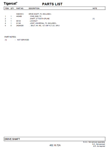 TIGERCAT 610E. PARTS CATALOGUE MANUAL