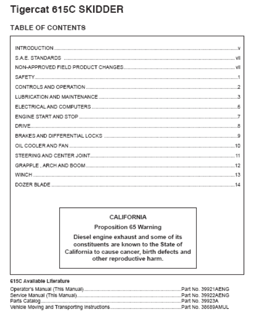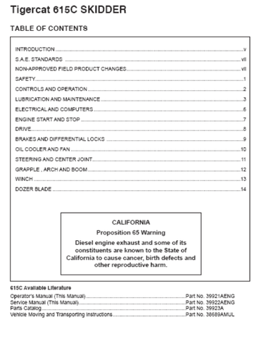 Download Complete Service Repair Manual PDF For Tigercat 615C Skidder | Serial No. (6150101-6151000)