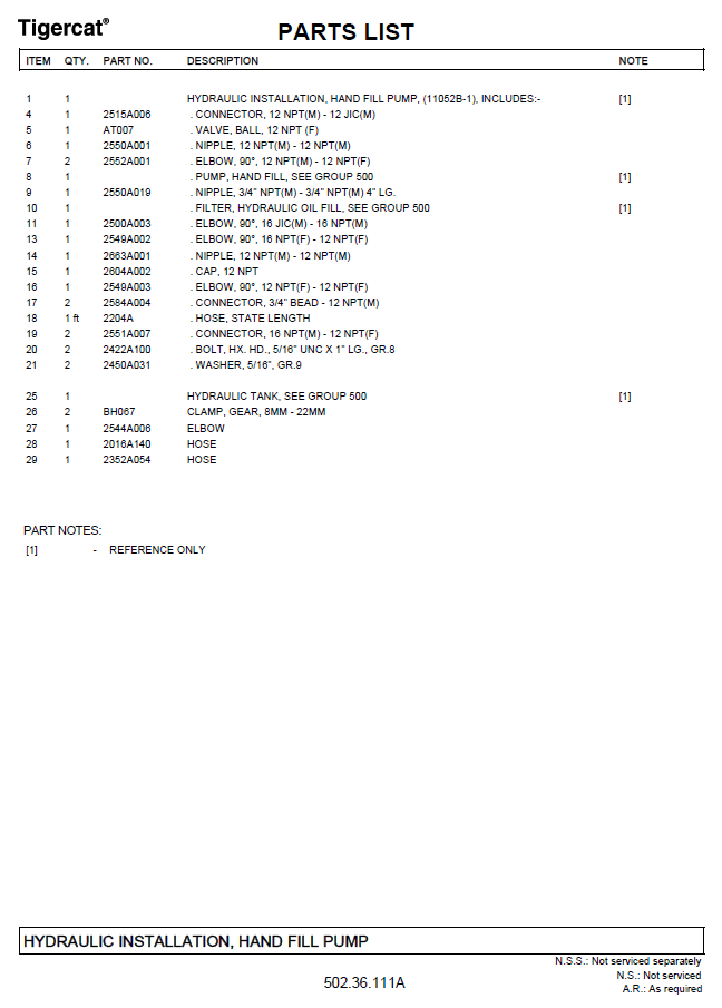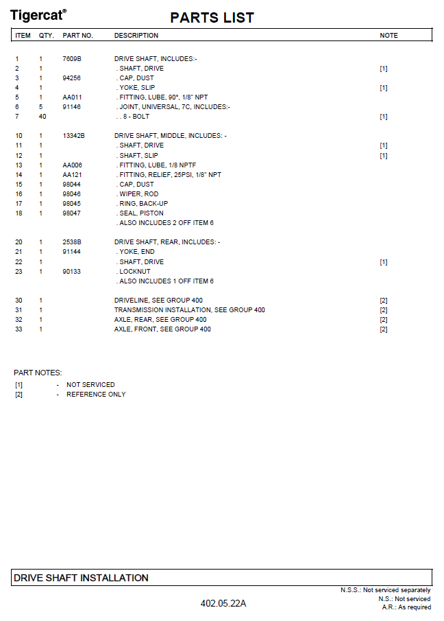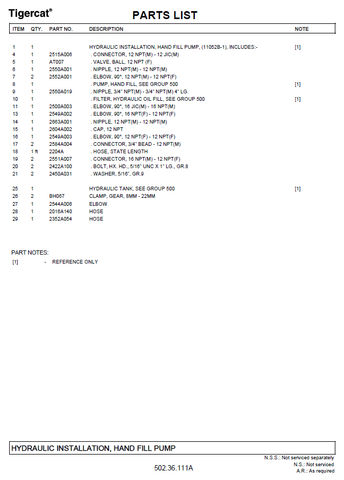 TIGERCAT 620C PARTS CATALOGUE MANUAL