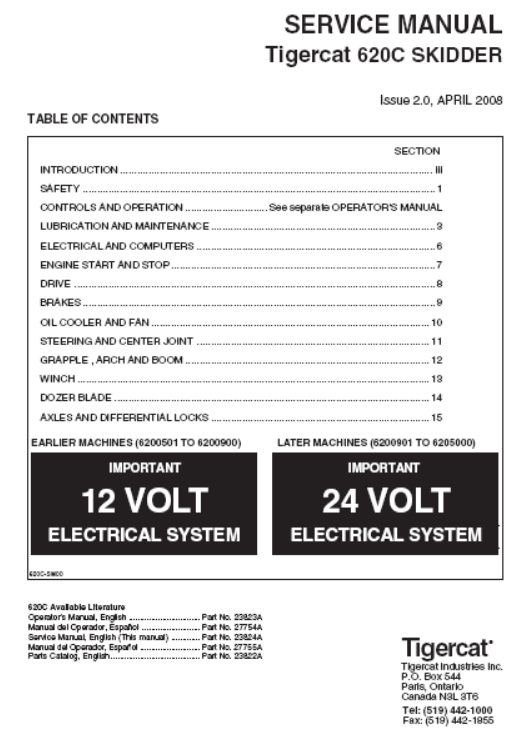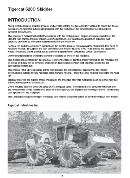 Download Complete Service Repair Manual PDF For Tigercat 620C Skidder | Serial No. (6200501-6205000)