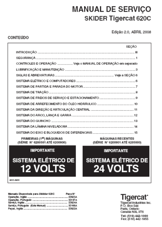 Download Complete Service Repair Manual PDF For Tigercat 620C Skidder | Serial No. (6200501-6205000) - Portuguese