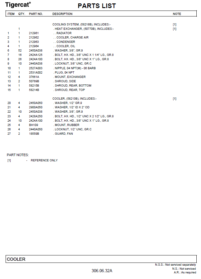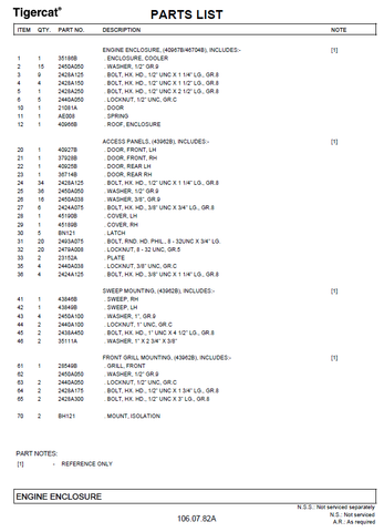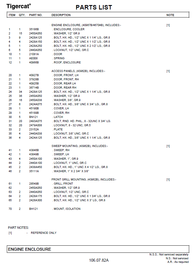 TIGERCAT 620D PARTS CATALOGUE MANUAL