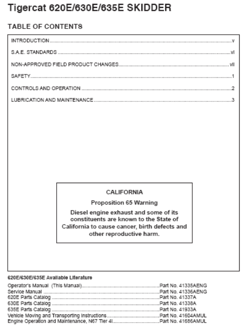 Efficiently operate your Tigercat 620E Skidder with this comprehensive Operator/User Manual. Available in a convenient PDF file download, this manual covers serial numbers 6206201-6209000 and 6206201-6206400. Get expert instruction and increase your productivity with this must-have resource.