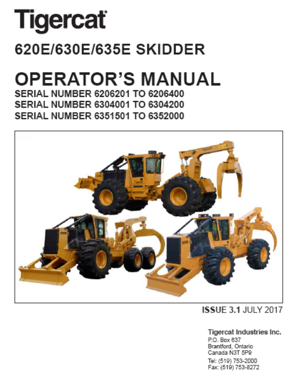 Download Complete Operator/User Manual PDF For Tigercat 620E Skidder | Serial No. (6206201-6209000, 6206201-6206400)