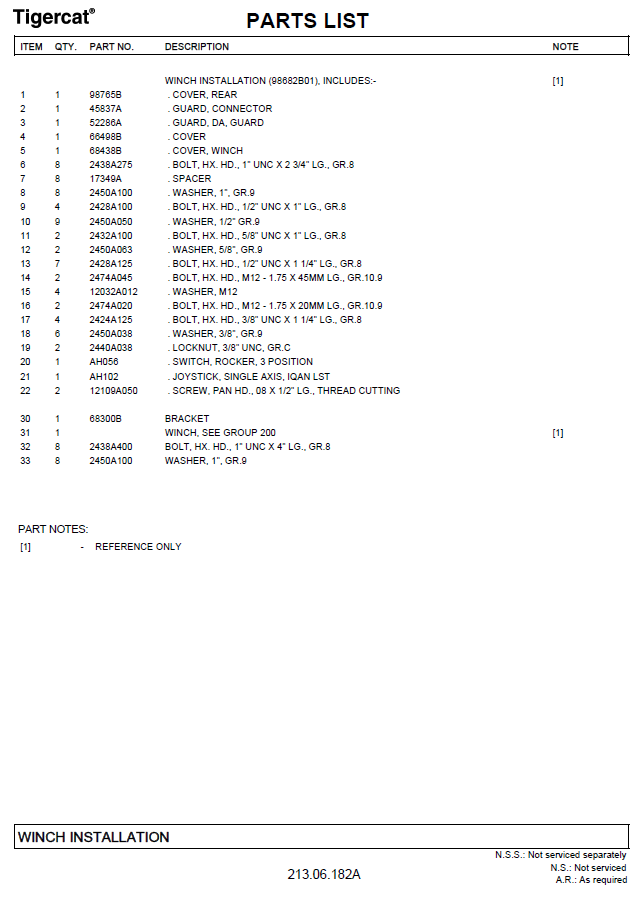 TIGERCAT 620H PARTS CATALOGUE MANUAL