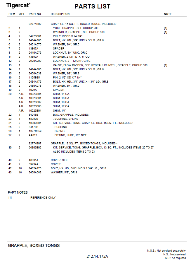 TIGERCAT 620H SKIDDER PARTS MANUAL