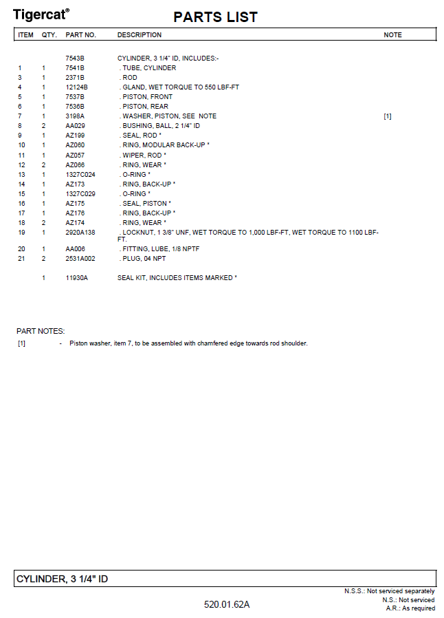 Download Complete Parts Catalogue Manual For Tigercat 625C Skidder | Serial No. 6250101 - 6250300