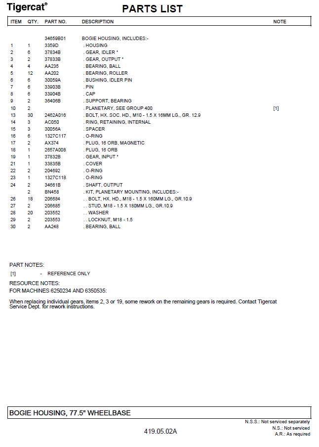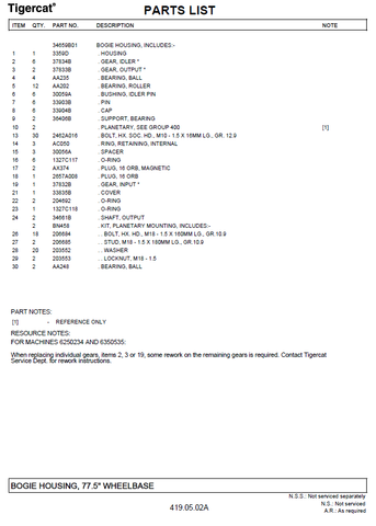 TIGERCAT 625C PARTS CATALOGUE MANUAL