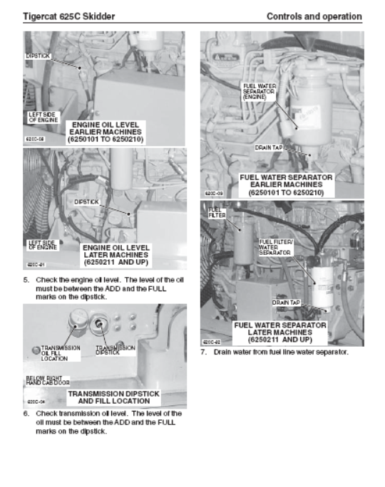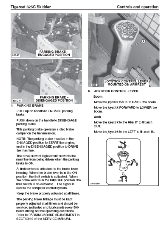 Tigercat 625C Skidder Operator/User Manual (6250101-6250300) - PDF File Download