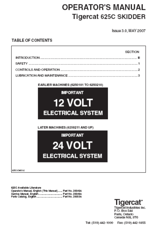Download Complete Operator/User Manual PDF For Tigercat 625C Skidder | Serial No. (6250101-6250300)