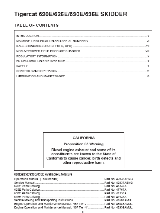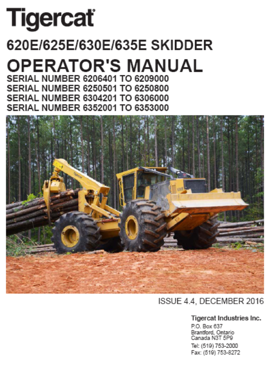 Download Complete Operator/User Manual PDF For Tigercat 625E, 630E Skidder | Serial No. (6250501-6250800, 6250501-6250800)