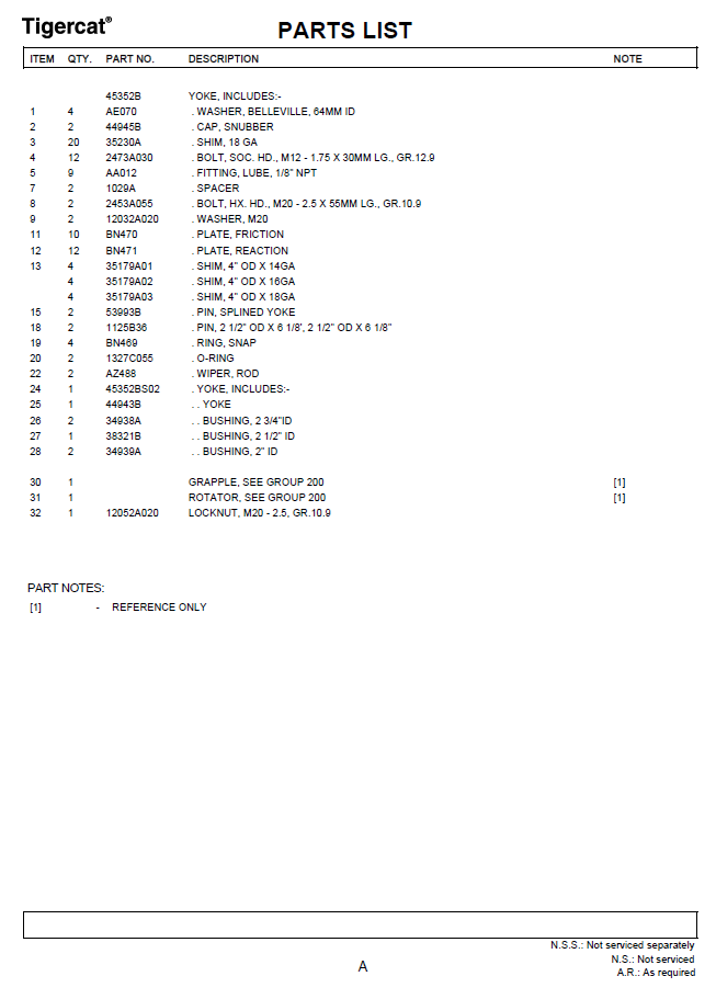 Download Complete Parts Catalogue Manual For Tigercat 625E Skidder | Serial No. 6250501 - 6250800