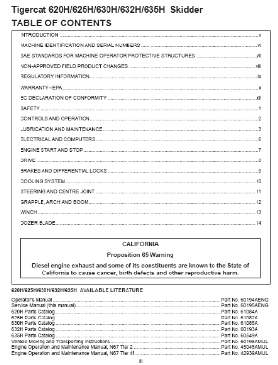 Download Complete Service Repair Manual PDF For Tigercat 625H, 630H Skidder | Serial No. (6250801-6251000)