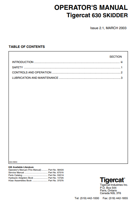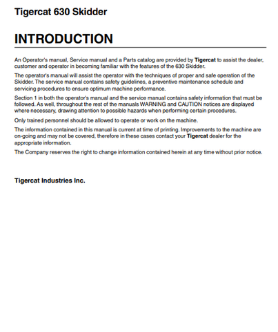 Download Complete Operator/User Manual PDF For Tigercat 630 Skidder | Serial No. (6300101-6300999)