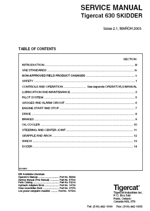 Download Complete Service Repair Manual PDF For Tigercat 630 Skidder | Serial No. (6300101-6300999)