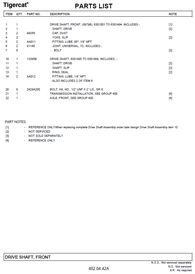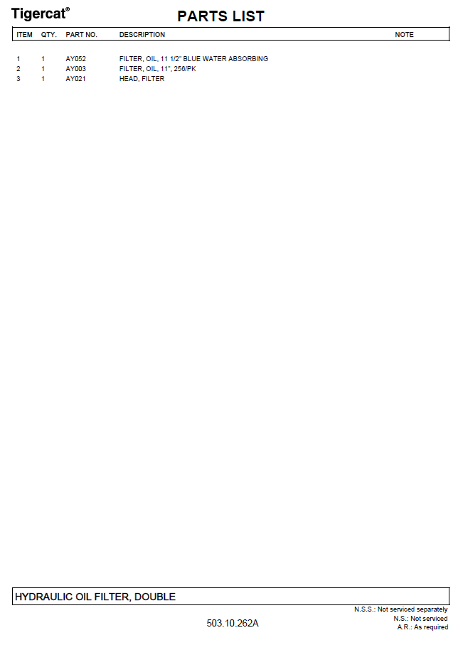 TIGERCAT 630B PARTS CATALOGUE MANUAL