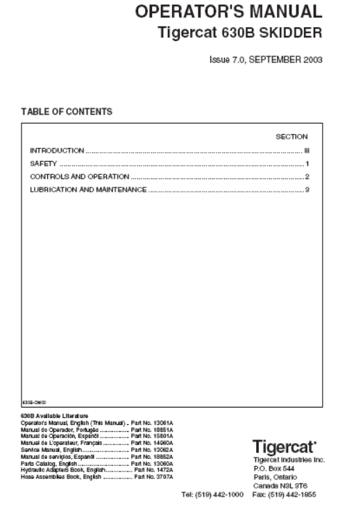 Download Complete Operator/User Manual PDF For Tigercat 630B Skidder | Serial No. (6301001-6301999)