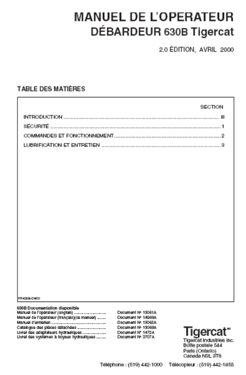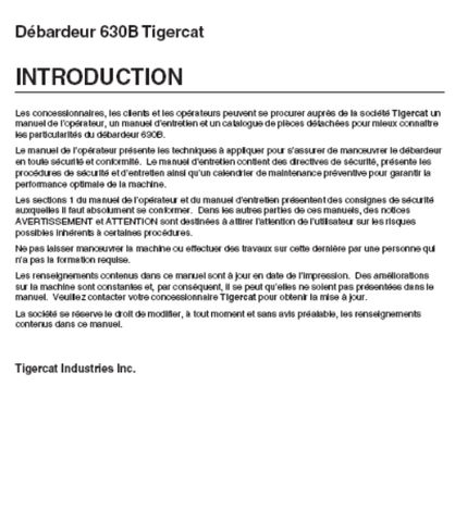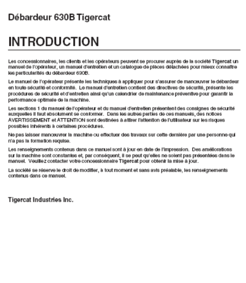 Download Complete Operator/User Manual PDF For Tigercat 630B Skidder | Serial No. (6301001-6301999) - French