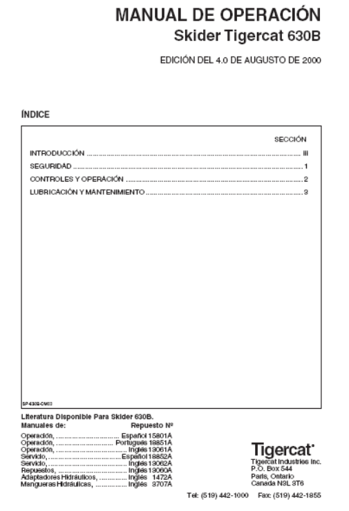 Download Complete Operator/User Manual PDF For Tigercat 630B Skidder | Serial No. (6301001-6301999) - Spanish