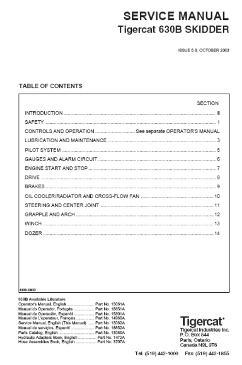 Download Complete Service Repair Manual PDF For Tigercat 630B Skidder | Serial No. (6301001-6301999)