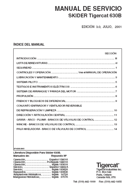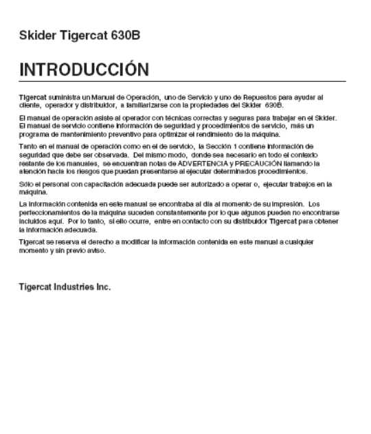 Download Complete Service Repair Manual PDF For Tigercat 630B Skidder | Serial No. (6301001-6301999) - Spanish