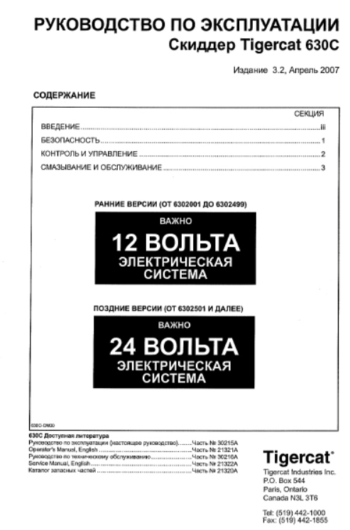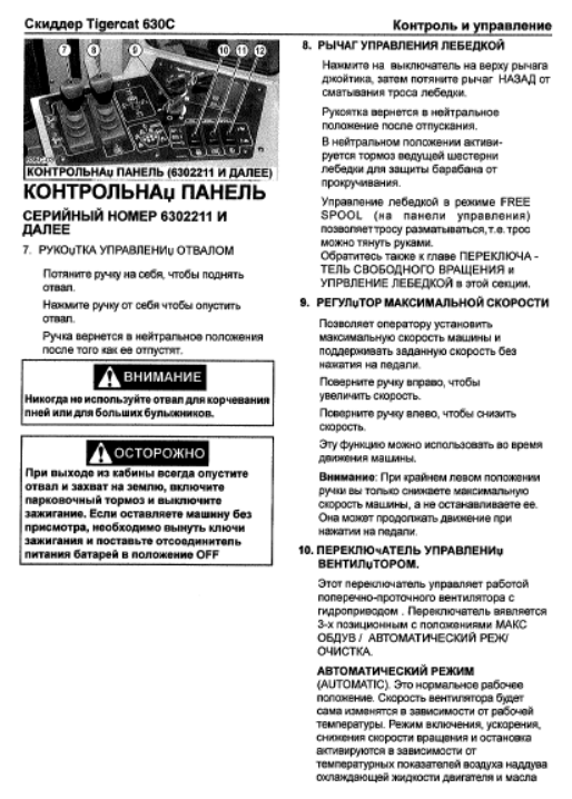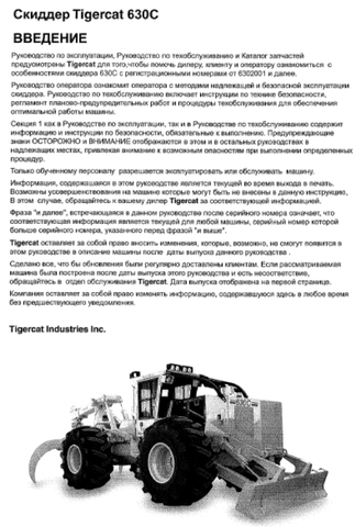 Download Complete Operator/User Manual PDF For Tigercat 630C Skidder | Serial No. (6302001-6303000) - Russian