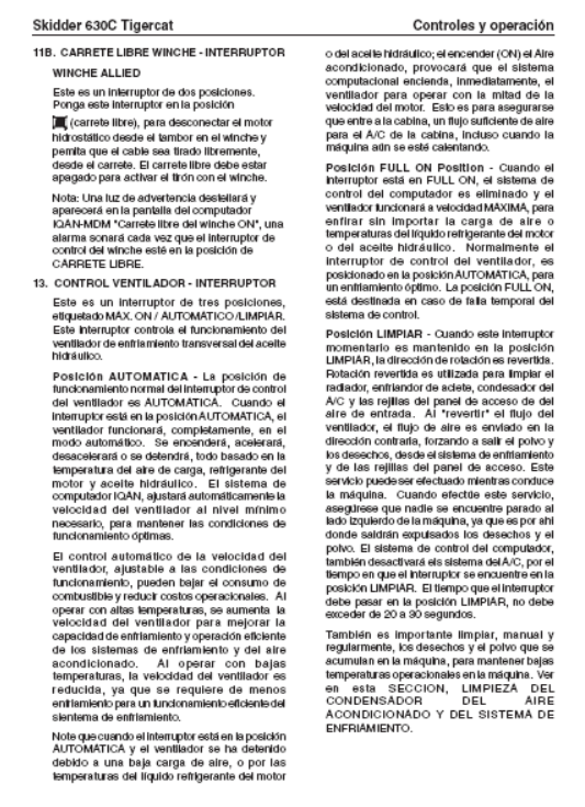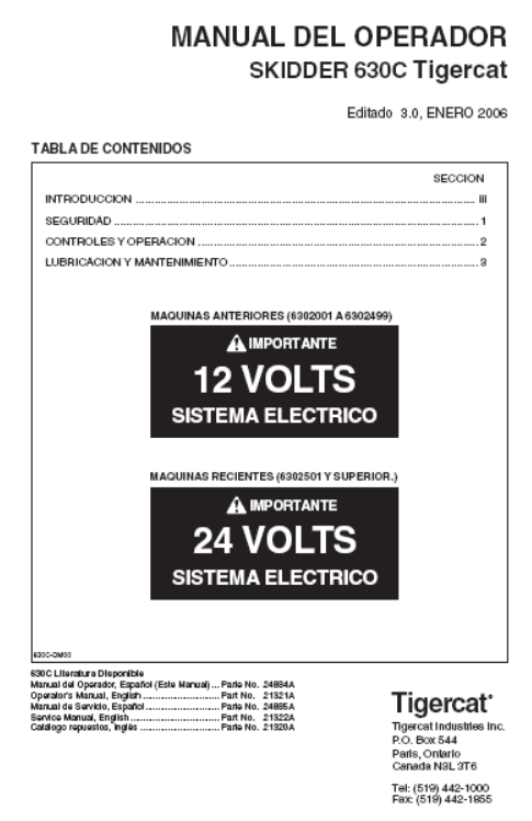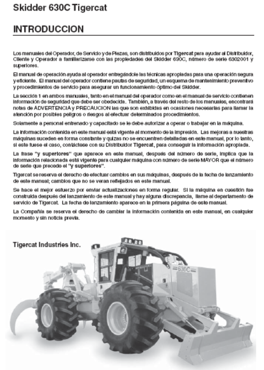 Download Complete Operator/User Manual PDF For Tigercat 630C Skidder | Serial No. (6302001-6303000) - Spanish