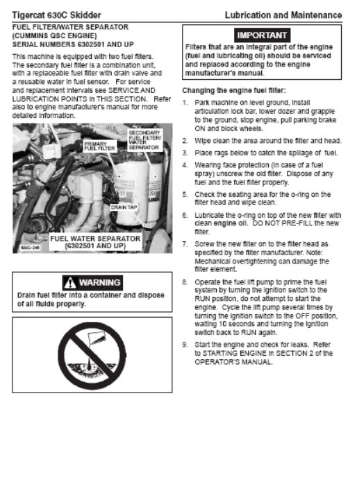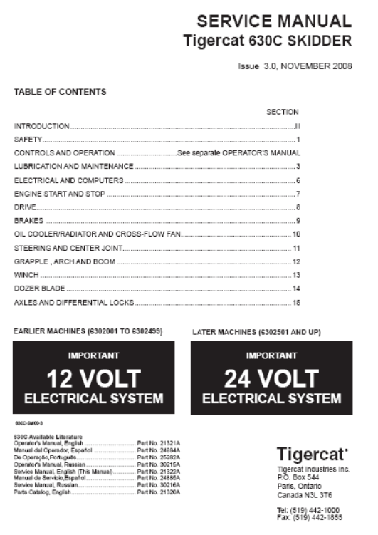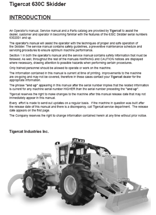 Download Complete Service Repair Manual PDF For Tigercat 630C Skidder | Serial No. (6302001-6303000)