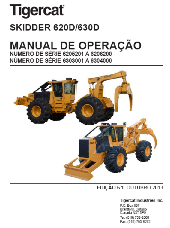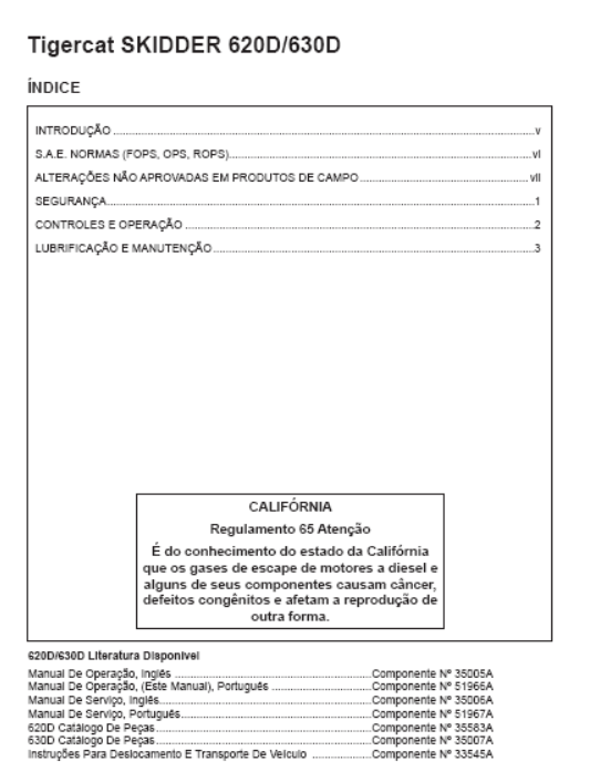 Download Complete Operator/User Manual PDF For Tigercat 630D Skidder | Serial No. (6303001-6304000) - Portuguese