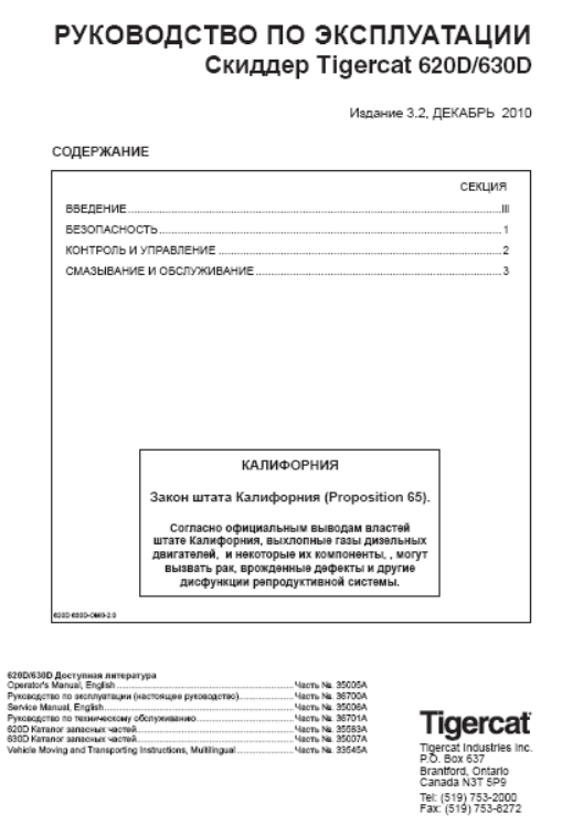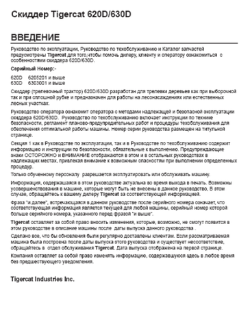 Download Complete Operator/User Manual PDF For Tigercat 630D Skidder | Serial No. (6303001-6304000) - Russian