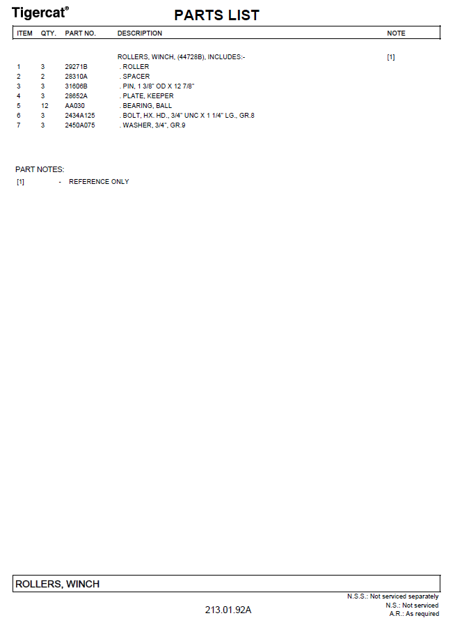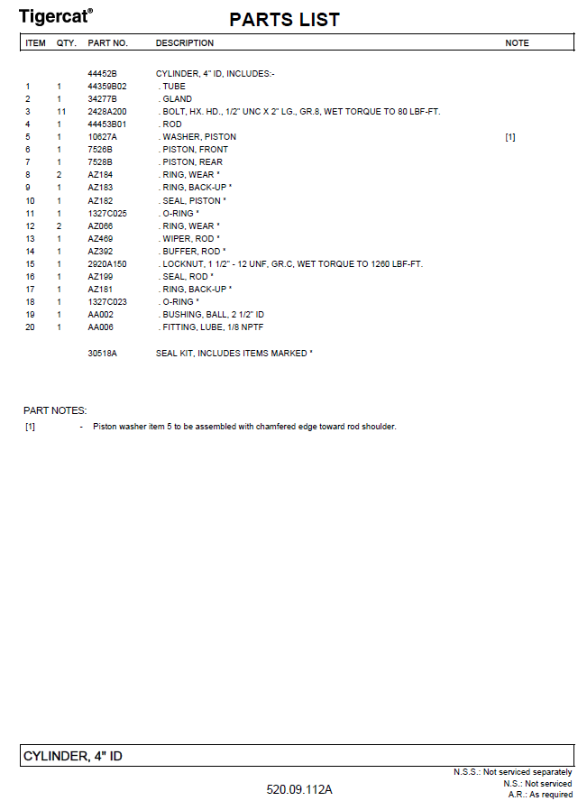 TIGERCAT 630E PARTS CATALOGUE MANUAL