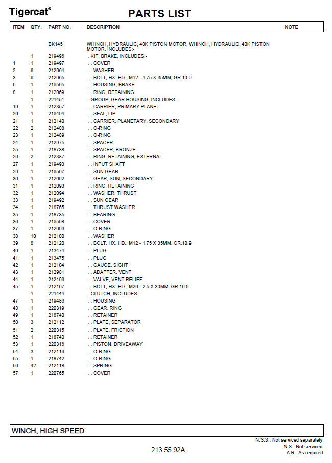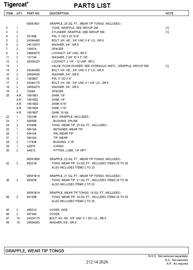 TIGERCAT 632E PARTS CATALOGUE MANUAL