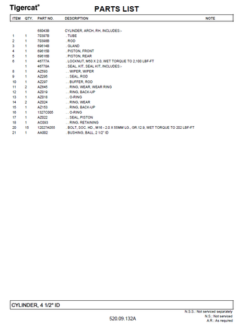 TIGERCAT 632H PARTS CATALOGUE MANUAL