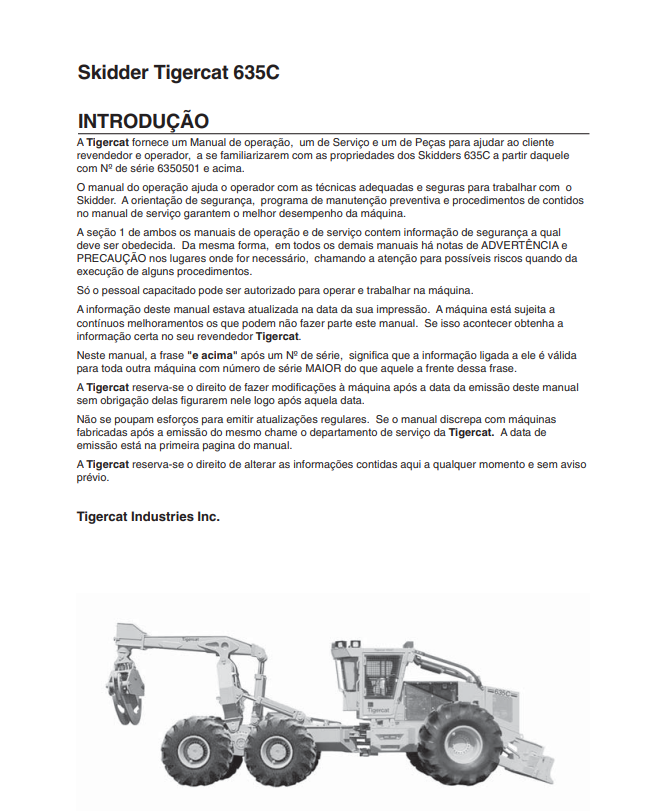 Download Complete Operator's Manual For Tigercat 635C Skidder