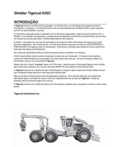 Become a Tigercat 635C Skidder expert with this comprehensive operator's manual. Download now for complete instructions on how to operate your skidder, and gain a deeper understanding of its features and benefits. Increase efficiency and productivity with the help of this informative PDF file.