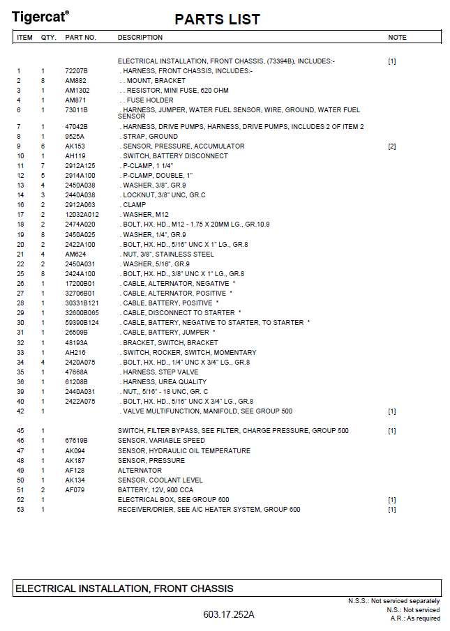 TIGERCAT 635G PARTS CATALOGUE MANUAL