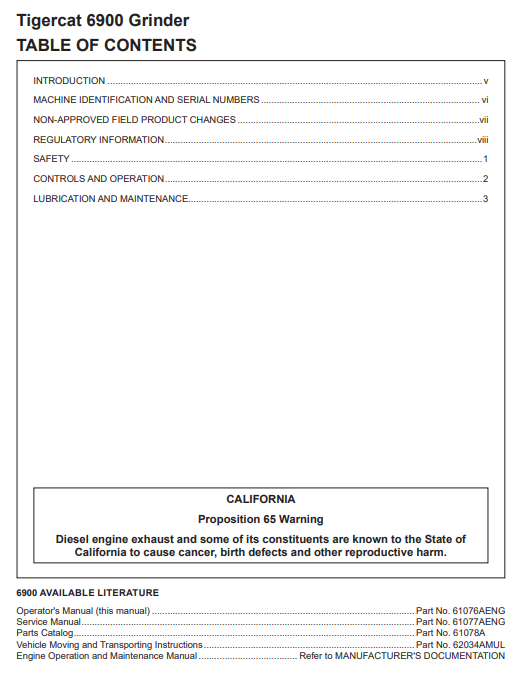 Download Complete Operator/User Manual PDF For Tigercat 6900 Material Processing | Serial No. (69000001-69000500)
