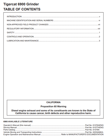 Tigercat 6900 Material Processing Operator/User Manual (69000001-69000500) - PDF File Download