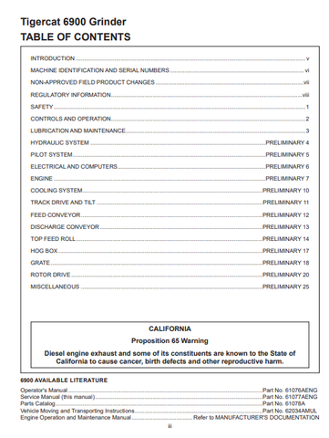 Download Complete Service Repair Manual PDF For Tigercat 6900 Material Processing | Serial No. (69000001-69000500)