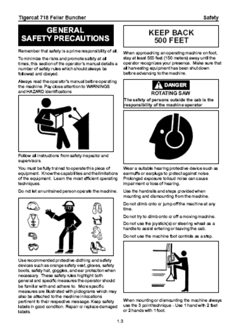 TIGERCAT 718 FELLER BUNCHER OPERATOR MANUAL (7180101 - 7180400) - PDF FILE DOWNLOAD