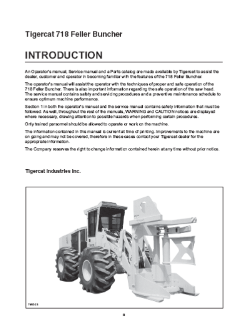 Download Complete Operator Manual For Tigercat 718 Feller Buncher | Serial No. (7180101 - 7180400)