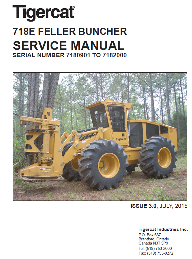Download Complete Service Manual For Tigercat 718E Feller Buncher | Serial No. (7180901 - 7182000)