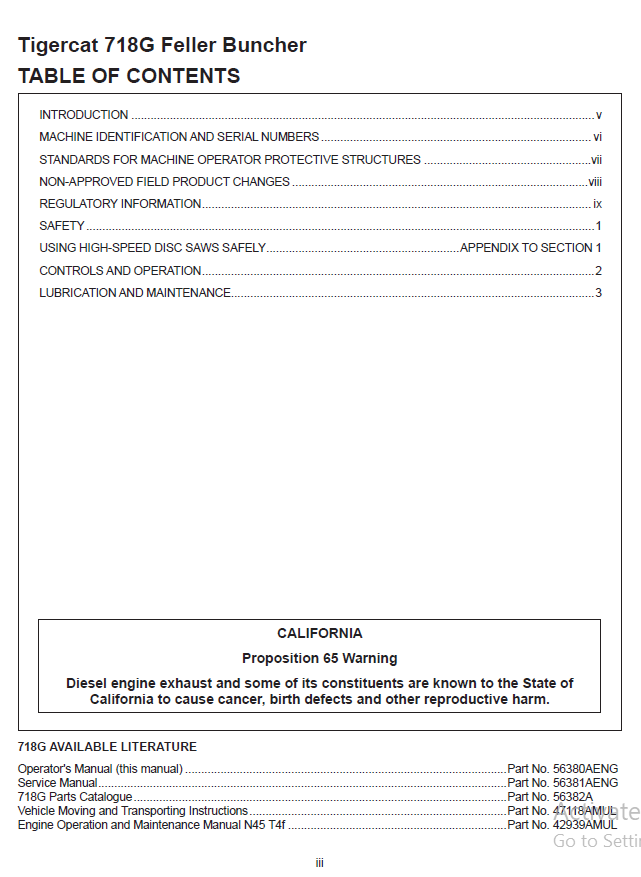 Download Complete Operator Manual For Tigercat 718G Feller Buncher | Serial No. (7182001 - 7183000)