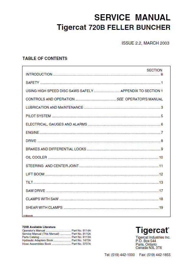 TIGERCAT 720B FELLER BUNCHER SERVICE MANUAL (7202001 - 7202999) - PDF FILE DOWNLOAD
