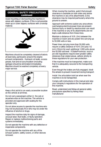 This Tigercat 720C Feller Buncher Operator Manual provides operators with reliable instructions for navigating the 720C series from serial number 7203001-7203499 safely and effectively. This PDF download provides exact details on operating procedures and maintenance requirements to maximize the productivity and usability of your 720C Feller Buncher.