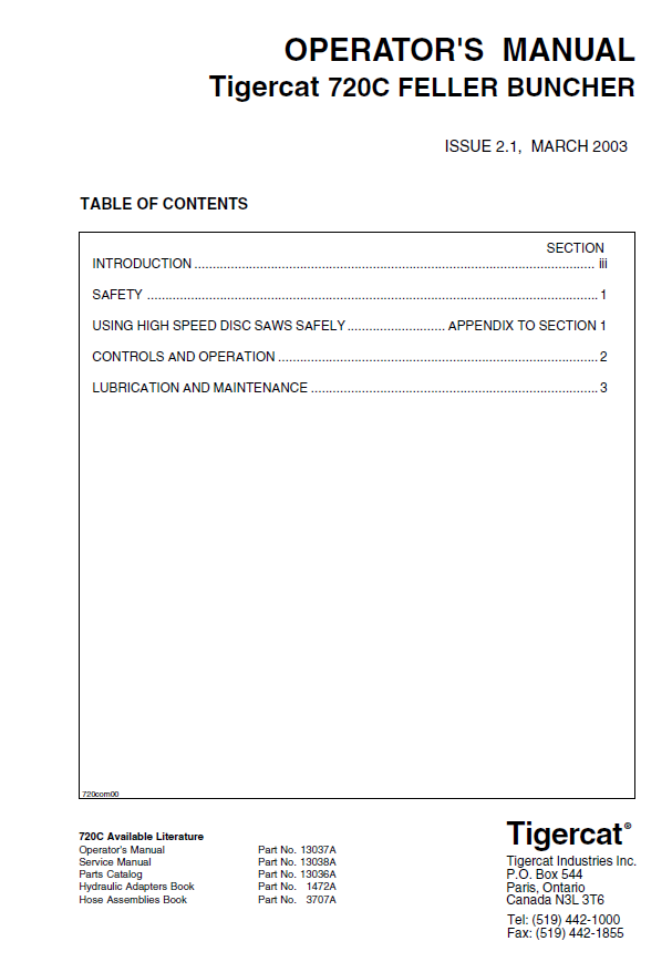 TIGERCAT 720C FELLER BUNCHER OPERATOR MANUAL (7203001 - 7203499) - PDF FILE DOWNLOAD